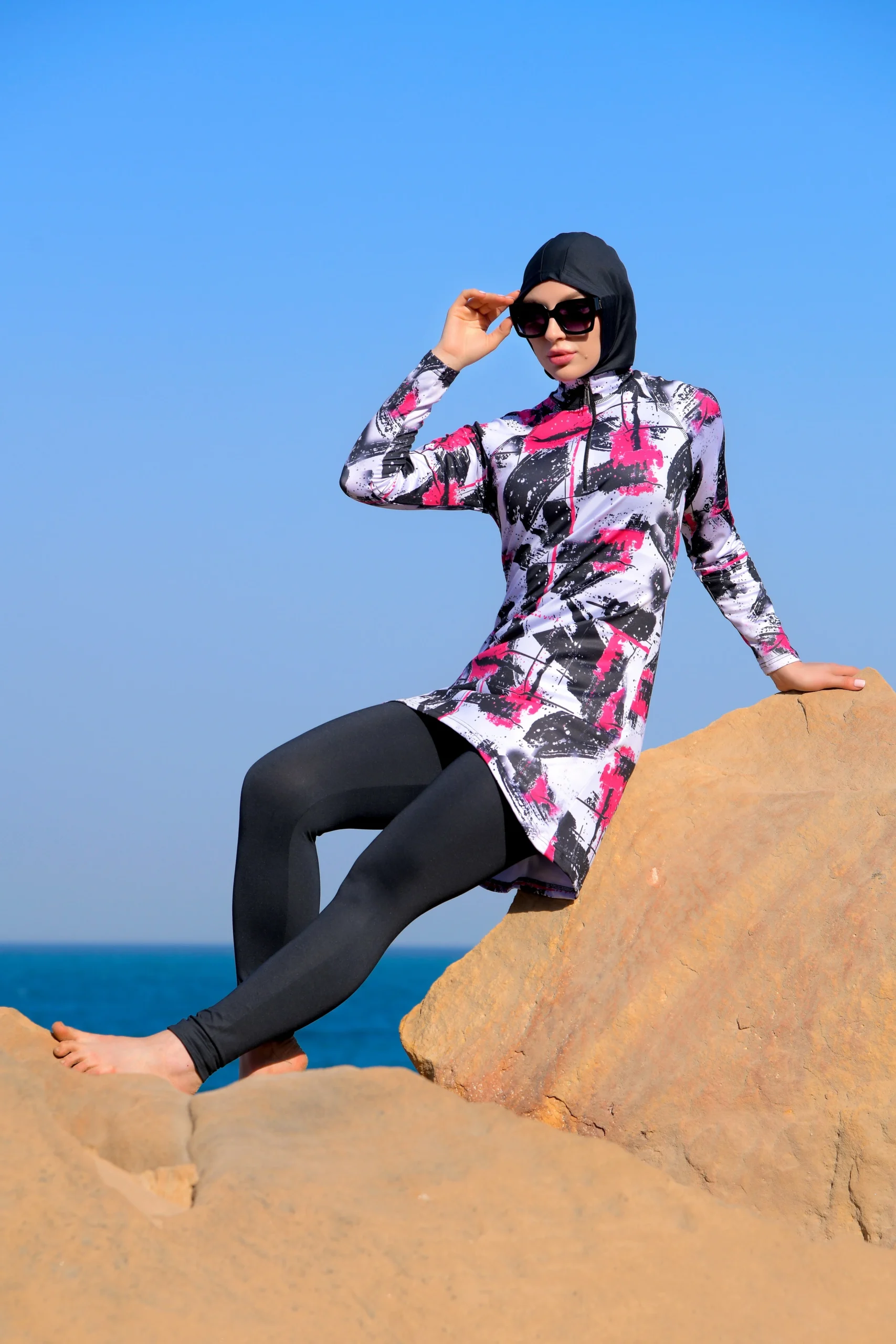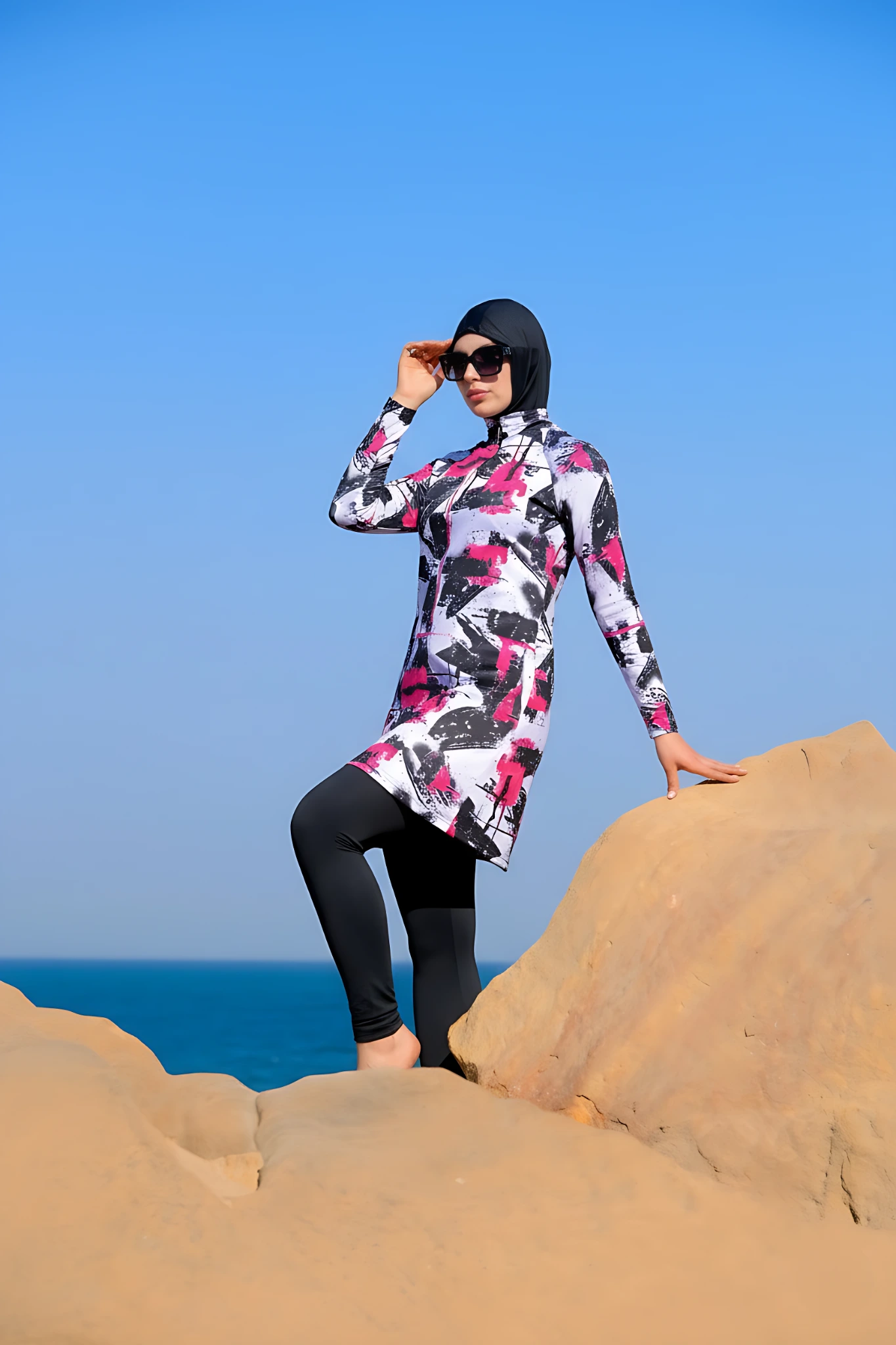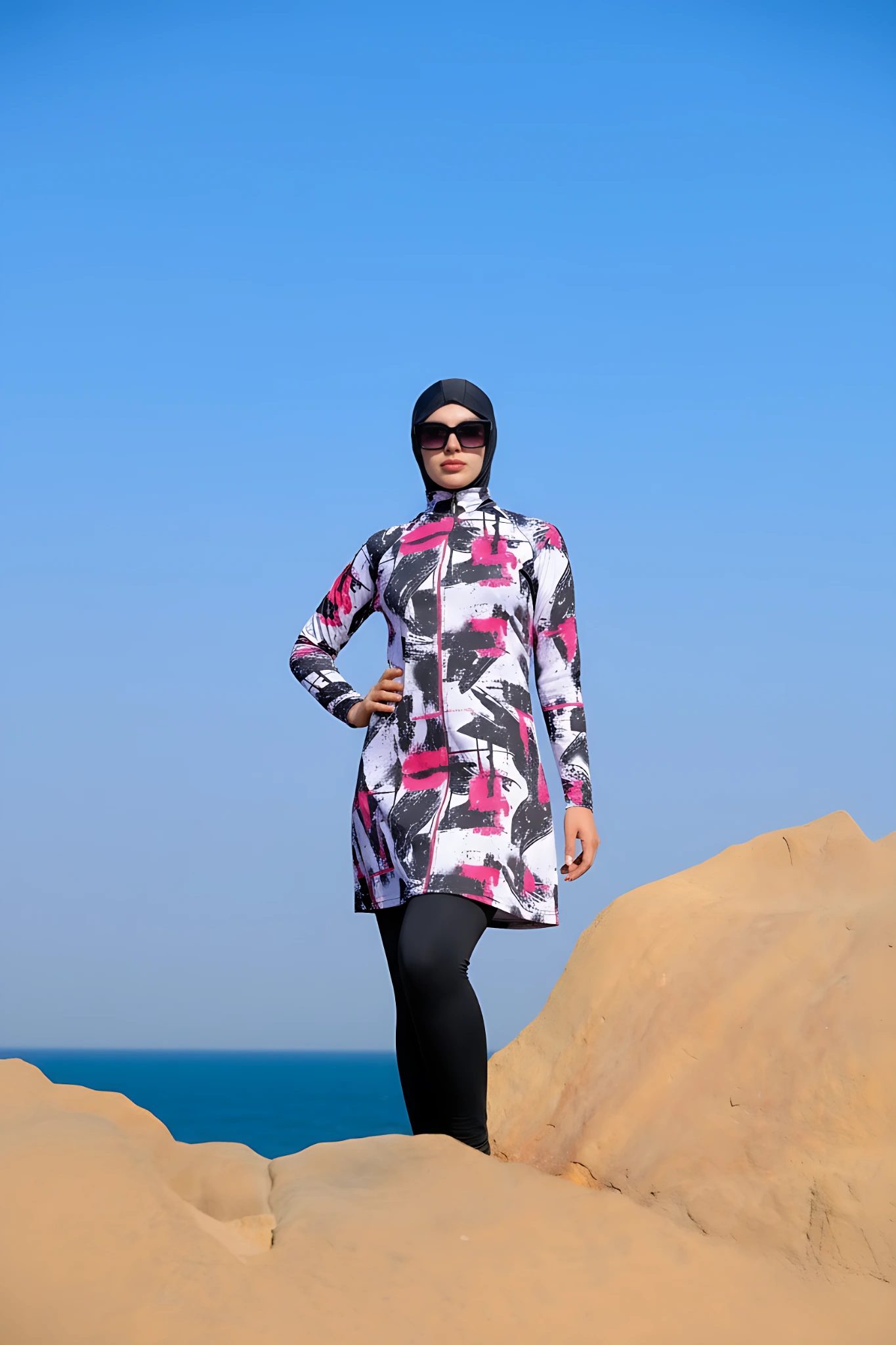 This stylish 3-piece burkini is designed for the modern woman who wants to enjoy the water with confidence and comfort.