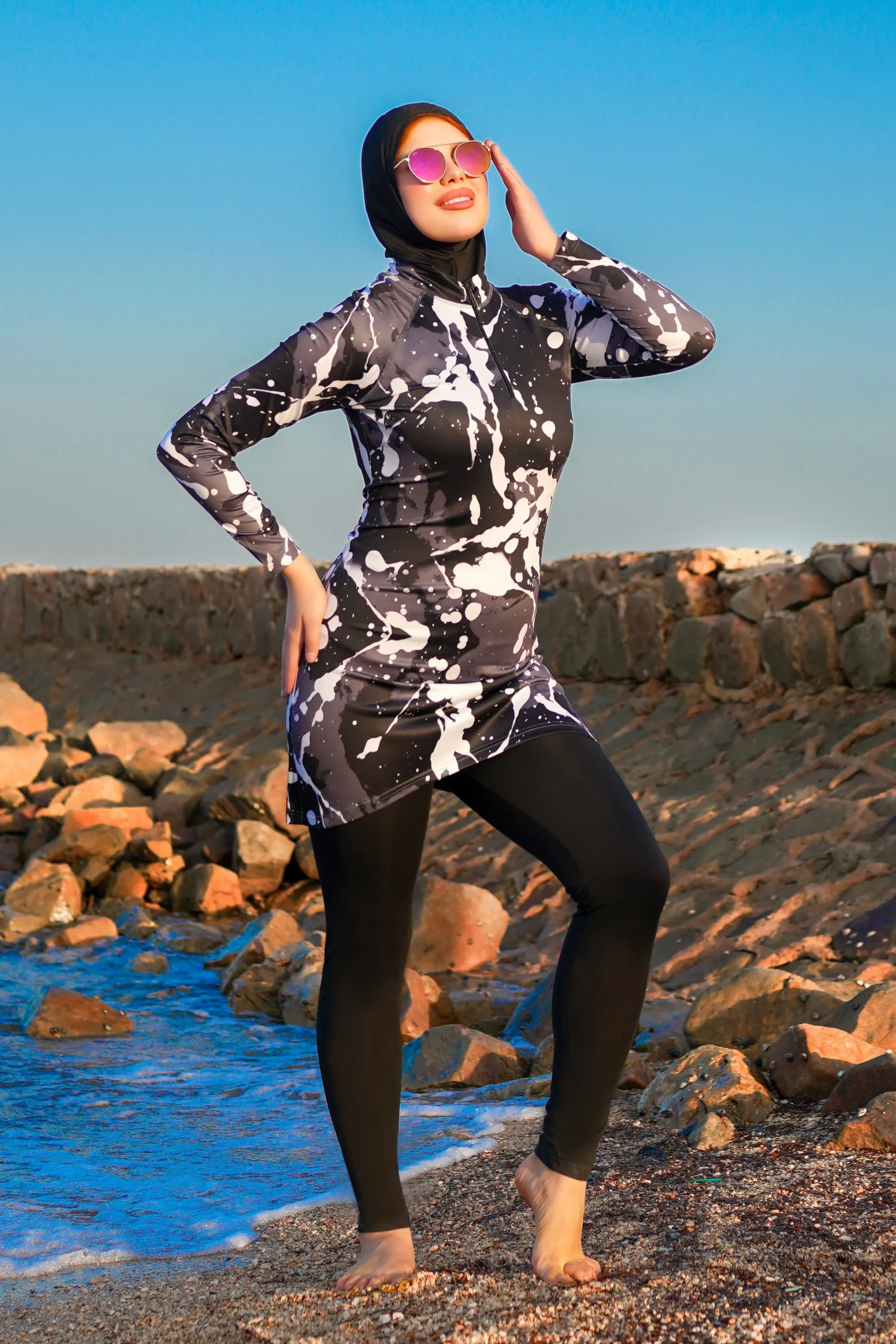 This stylish 3-piece burkini is designed for the modern woman who wants to enjoy the water with confidence and comfort.
