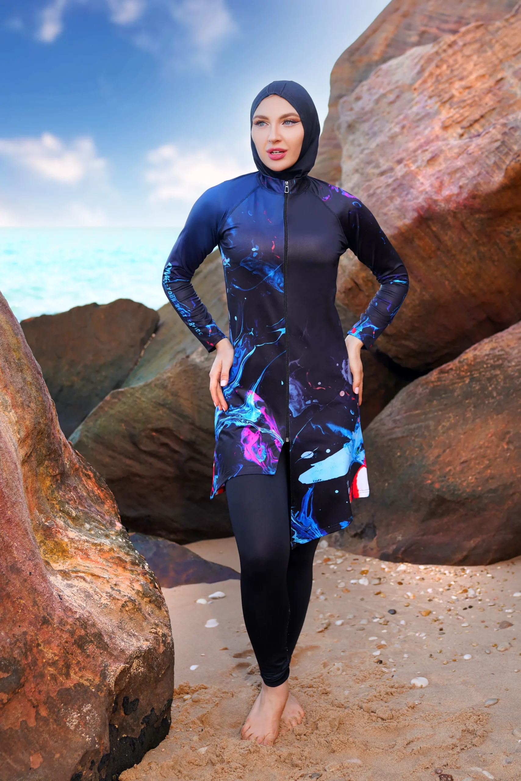 • Stylish Look: The modern laser print and coordinated pieces ensure you look fashionable while maintaining modesty.