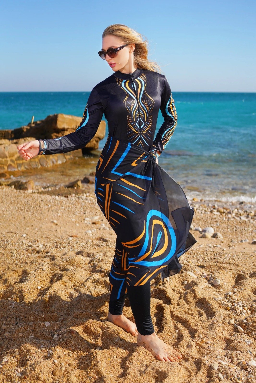 This stunning Burkini set is perfect for a day at the beach or pool, offering both coverage and comfort with a touch of ancient elegance.