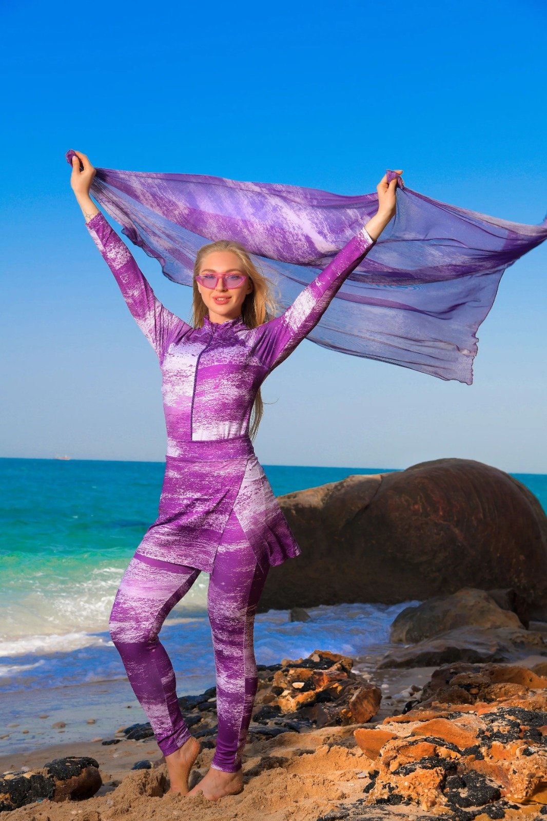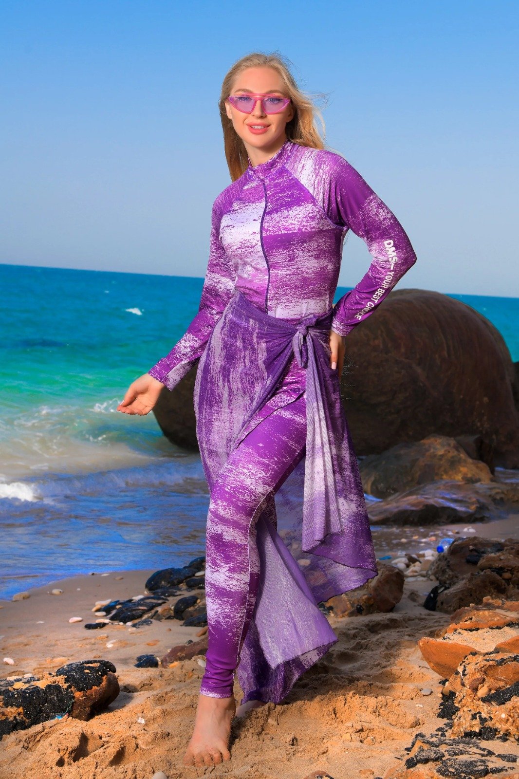 Dive into modesty and style with our exquisite 4-piece Burkini set, designed for comfort and confidence on every beach day.