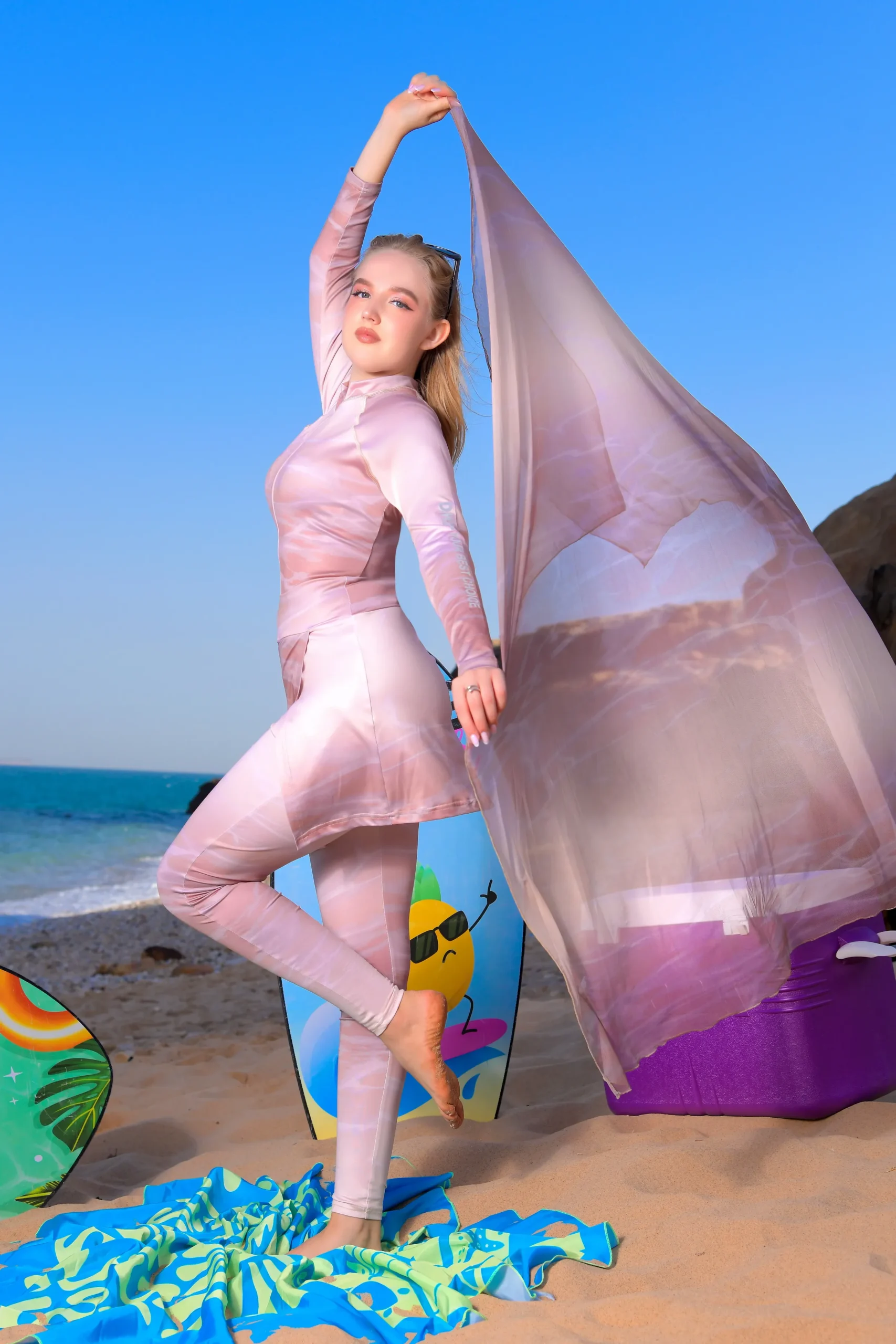 Dive into modesty and style with our exquisite 4-piece Burkini set, designed for comfort and confidence on every beach day.