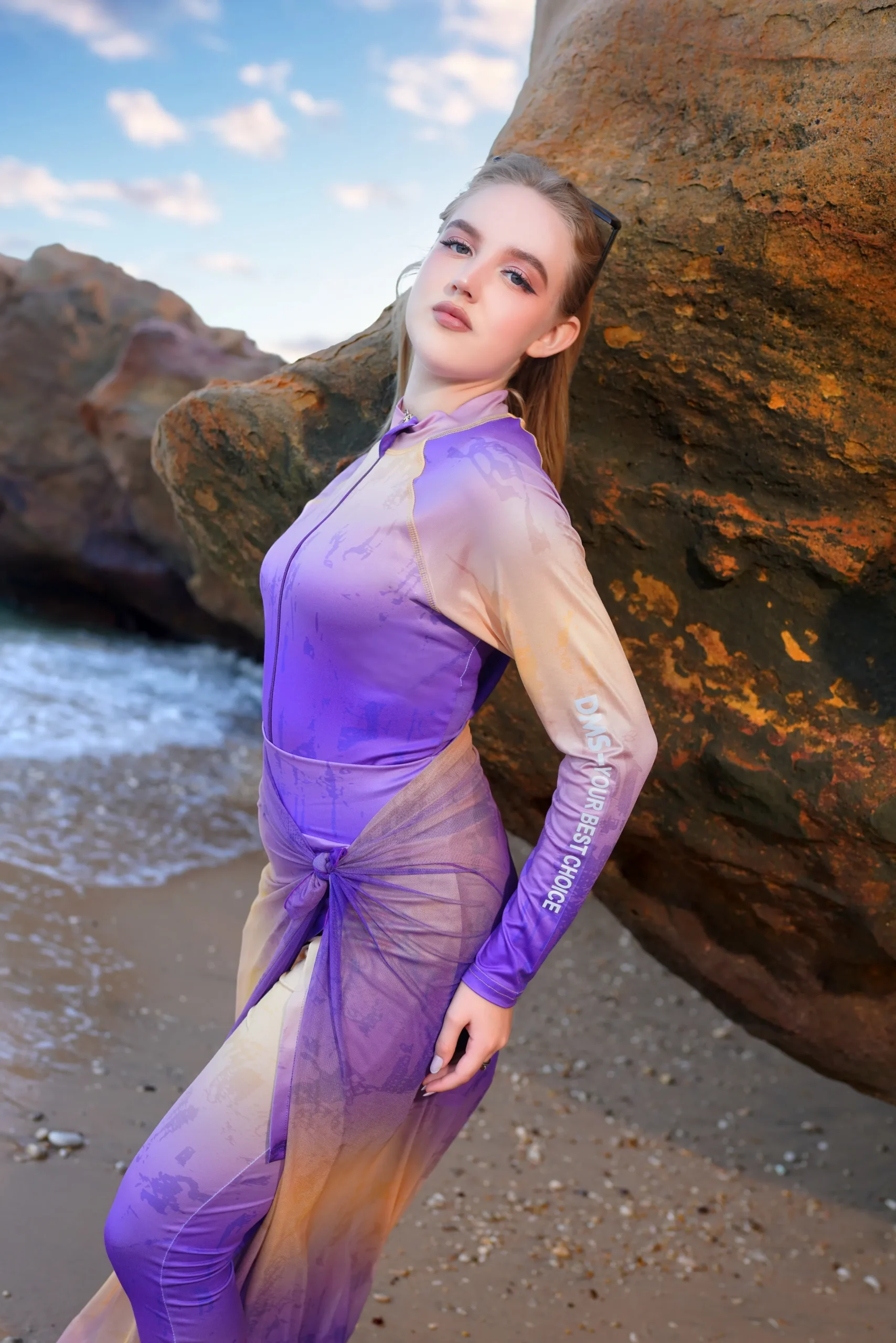 Dive into modesty and style with our exquisite 4-piece Burkini set, designed for comfort and confidence on every beach day.