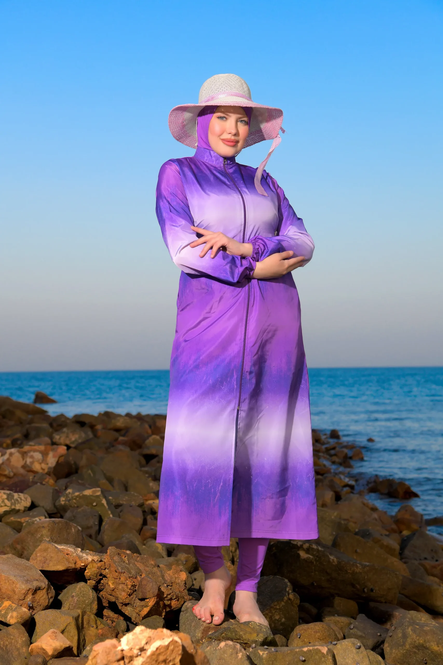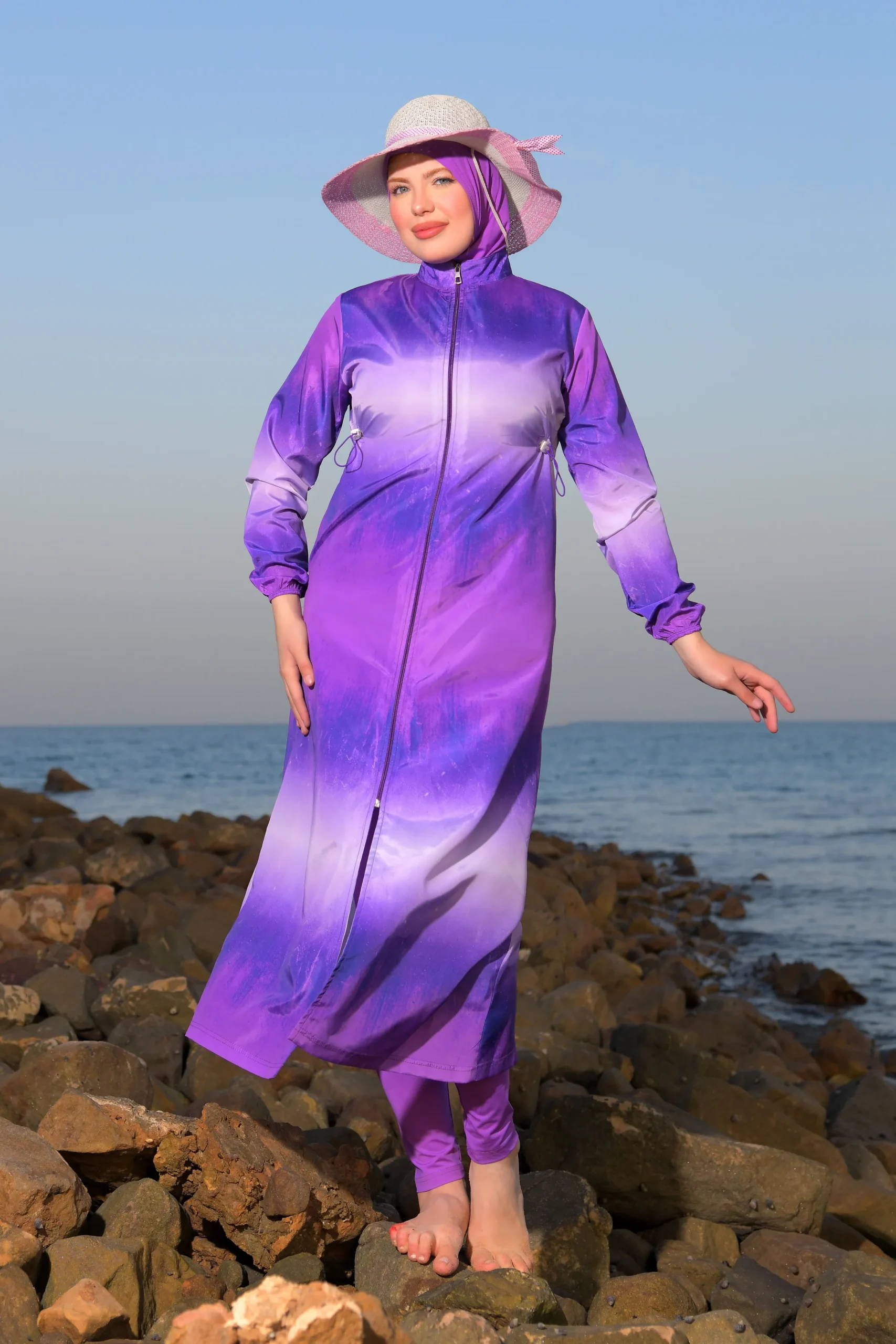 • The 4-piece design offers flexibility and full coverage for modesty.