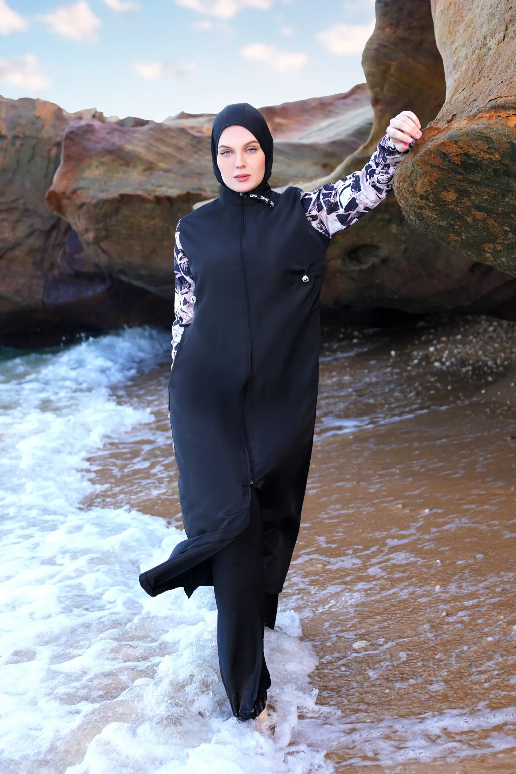 Step into the water with elegance and total comfort! This stylish burkini set is designed for the woman who wants maximum coverage without compromising on fashion.