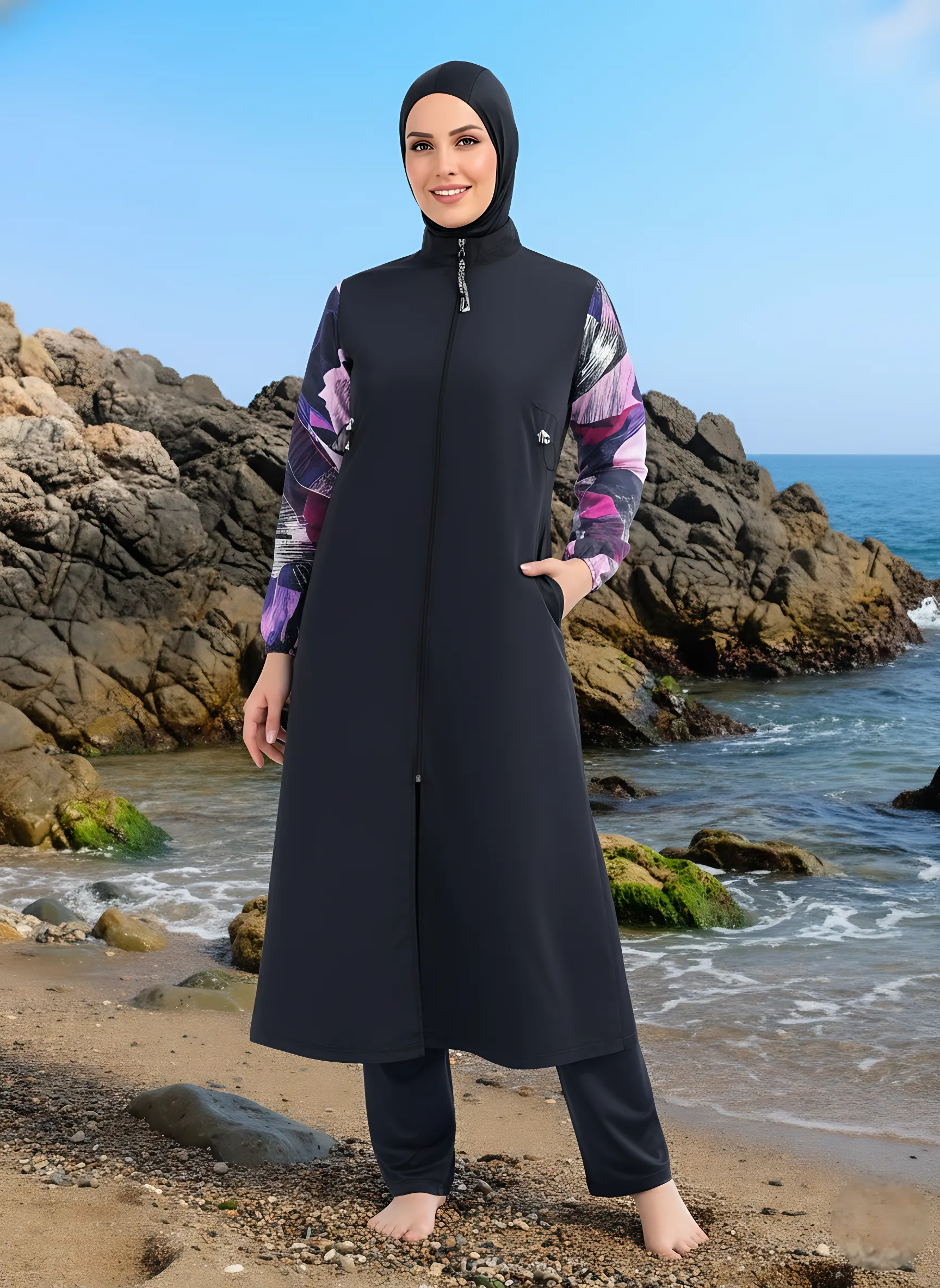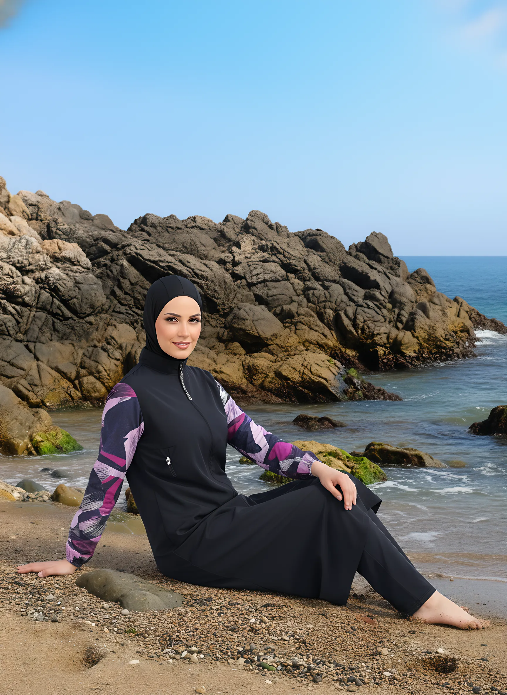 Step into the water with elegance and total comfort! This stylish burkini set is designed for the woman who wants maximum coverage without compromising on fashion.