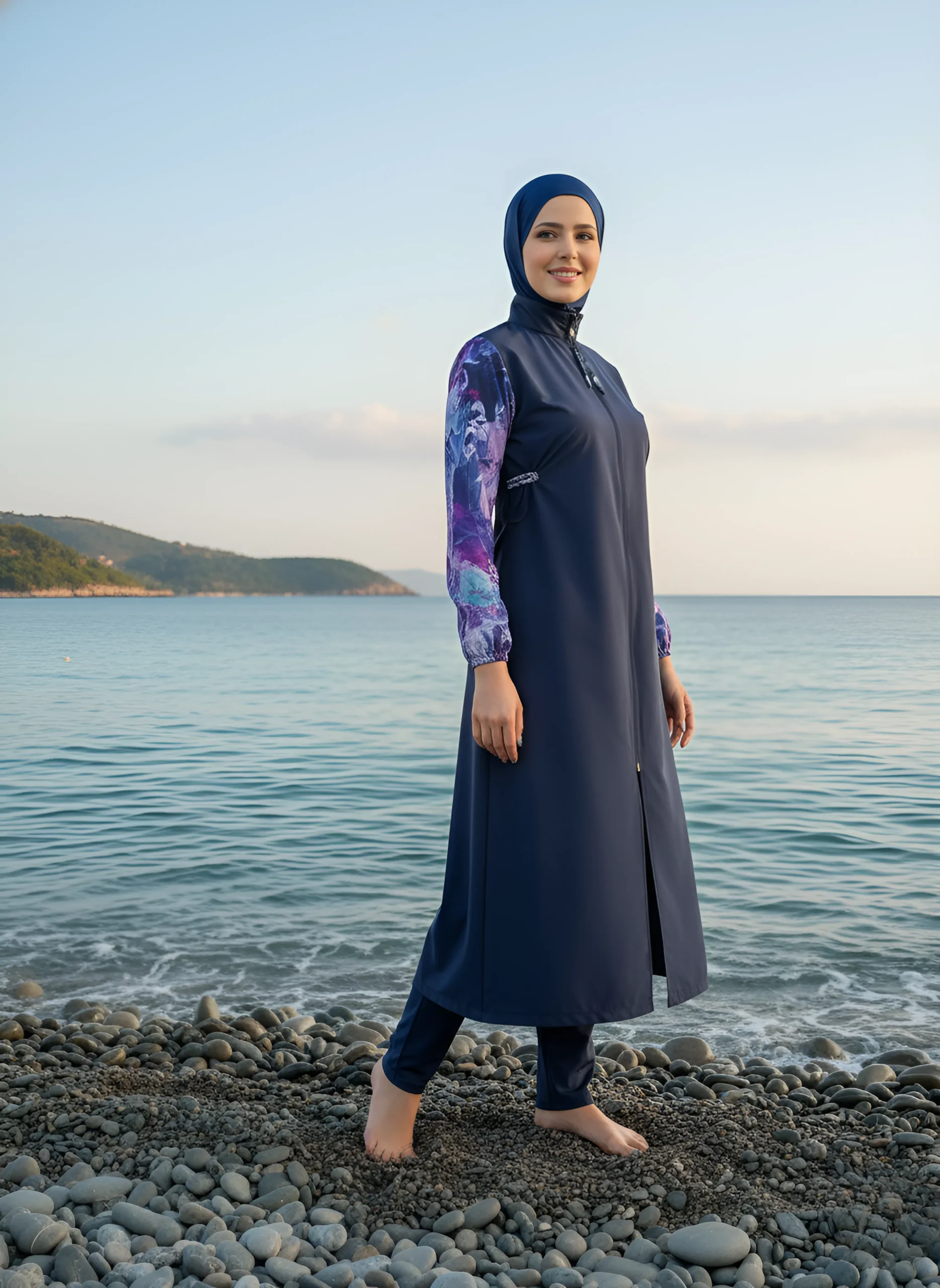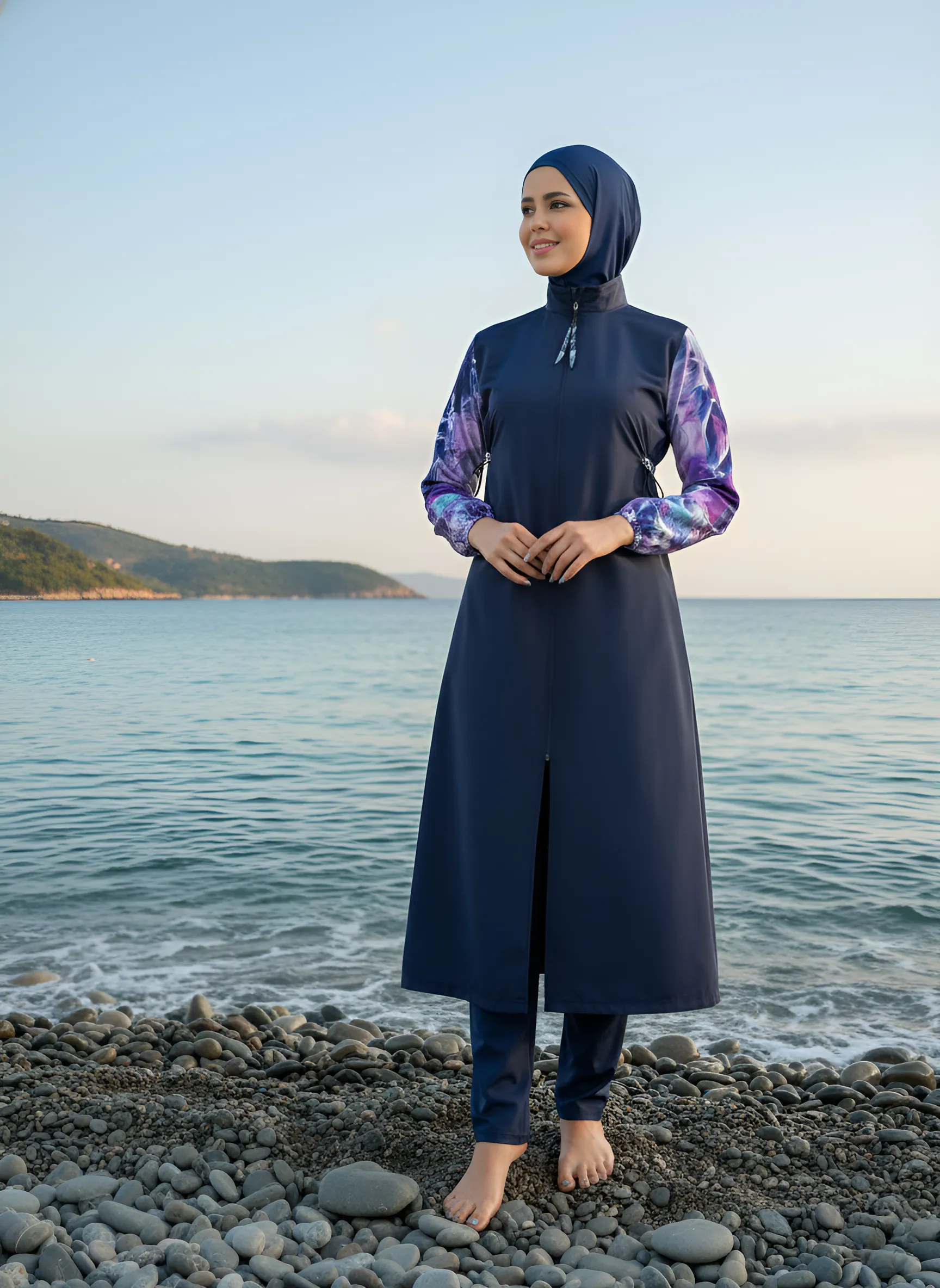 Step into the water with elegance and total comfort! This stylish burkini set is designed for the woman who wants maximum coverage without compromising on fashion.