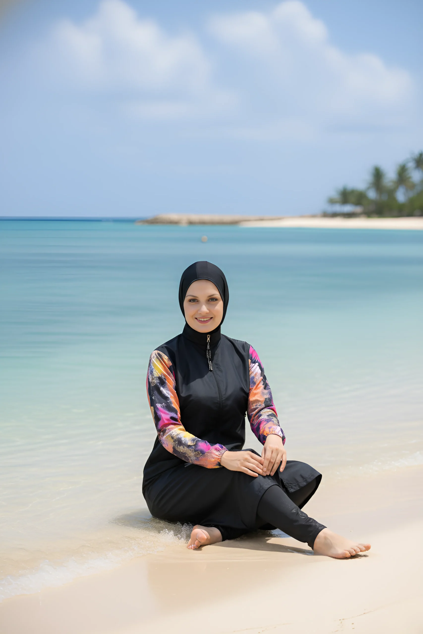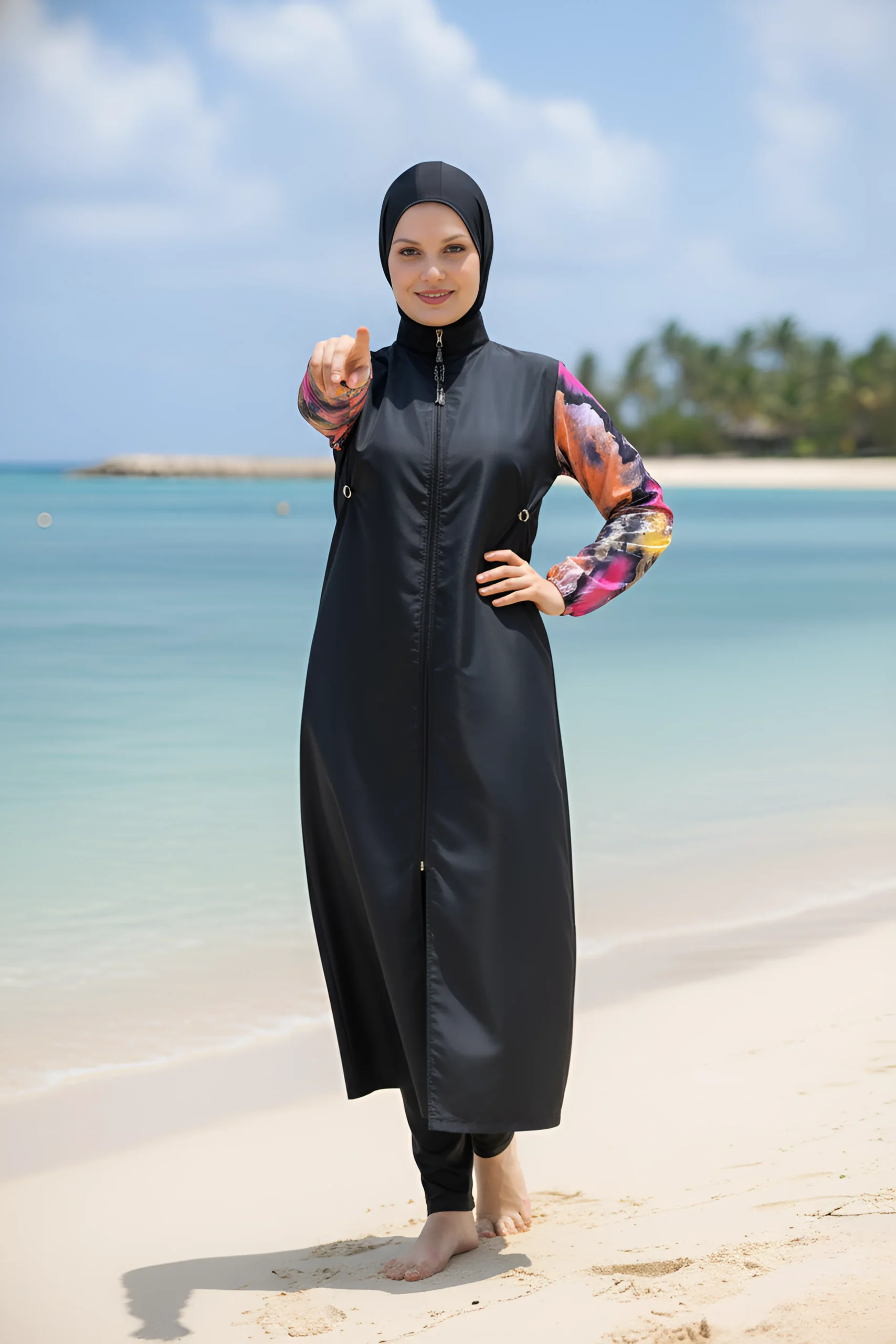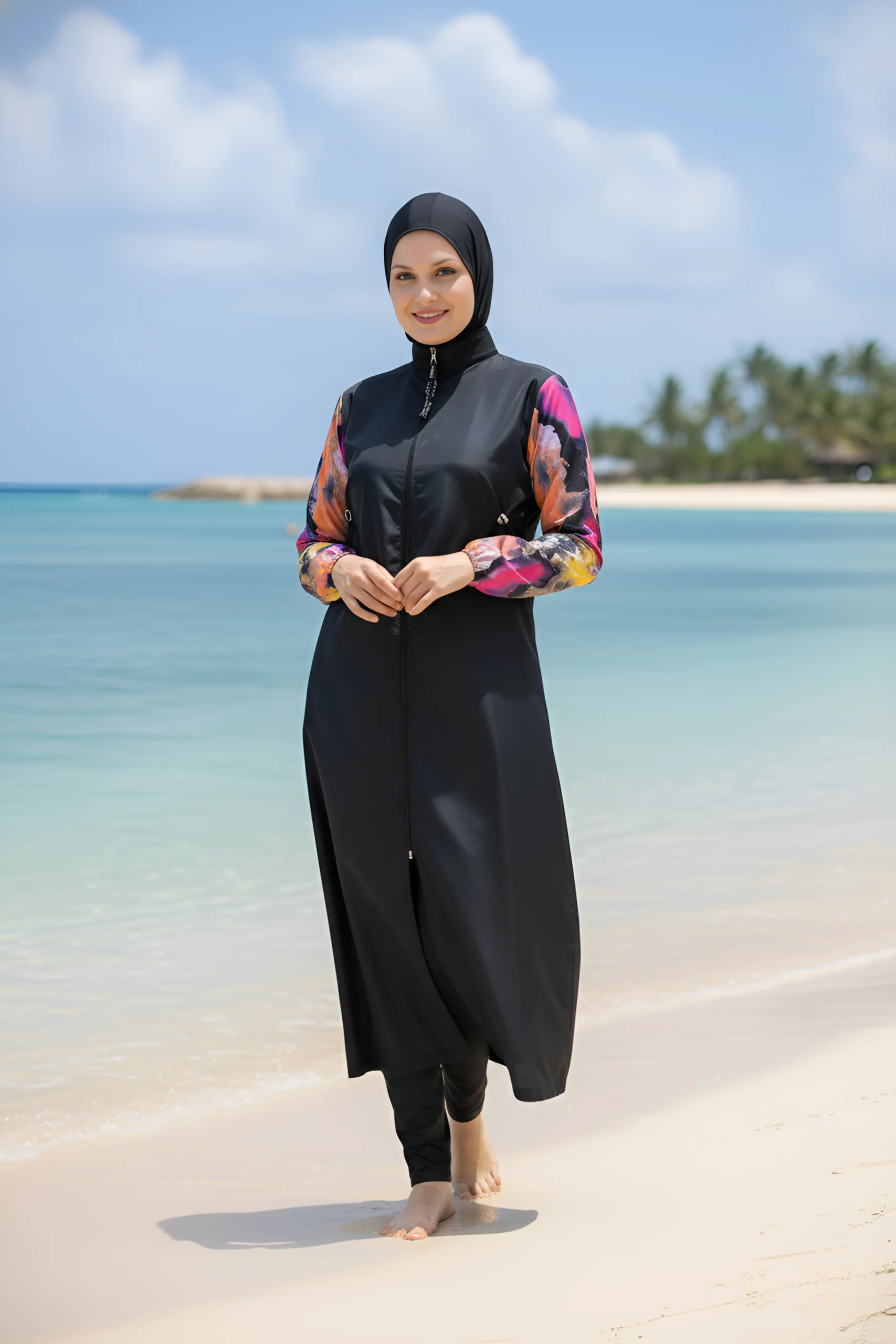 Step into the water with elegance and total comfort! This stylish burkini set is designed for the woman who wants maximum coverage without compromising on fashion.