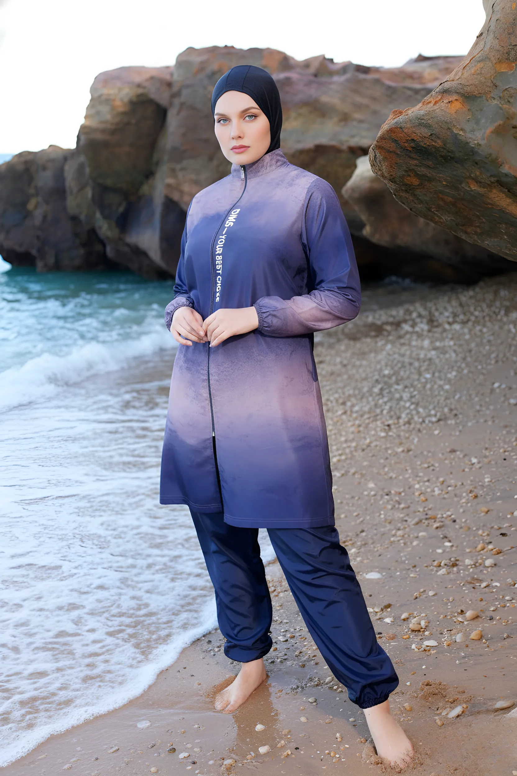 This fashionable Burkini set is designed for comfort and confidence, whether you’re at the beach or by the pool.
