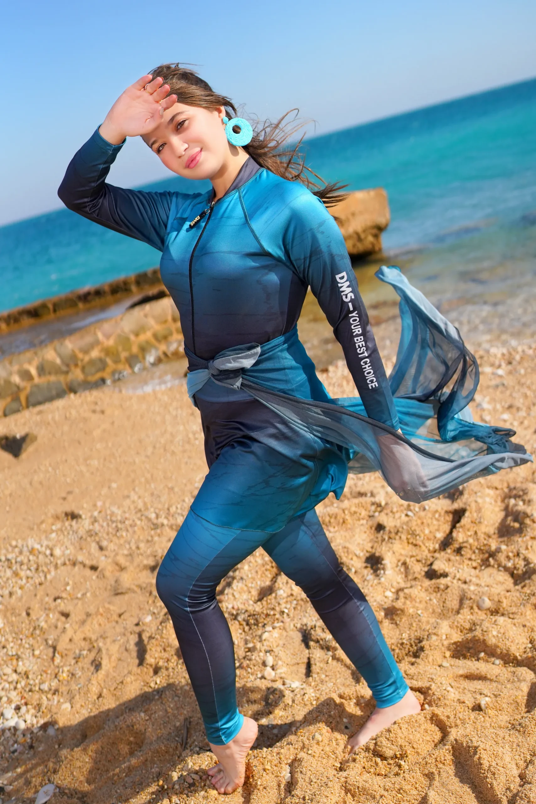 This four-piece Burkini set is designed with teenagers in mind, offering a perfect blend of modern style, sun protection, and comfort for a worry-free swimming experience.
